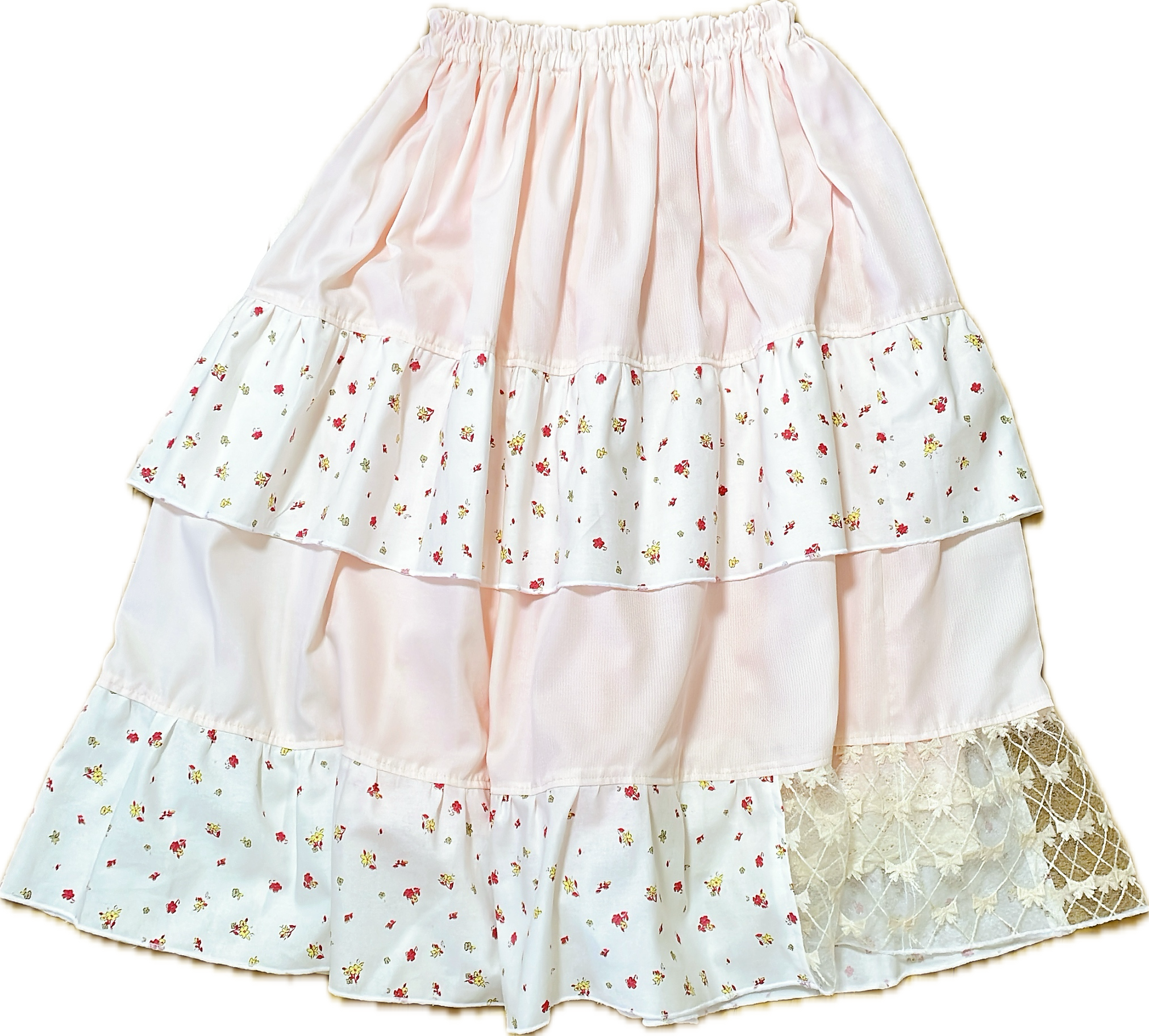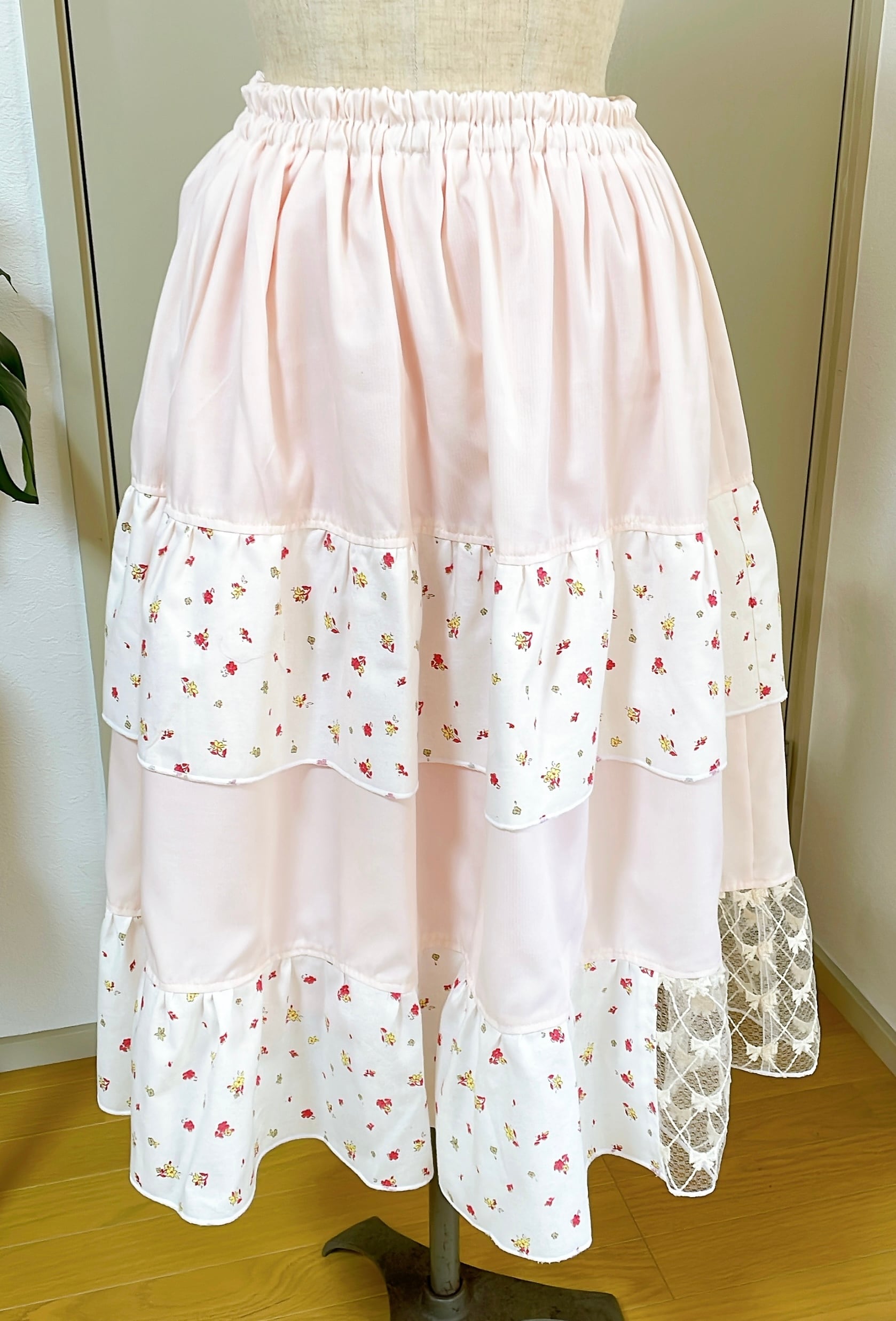 スカートの裾レースの内側にコットンレースをつけました。